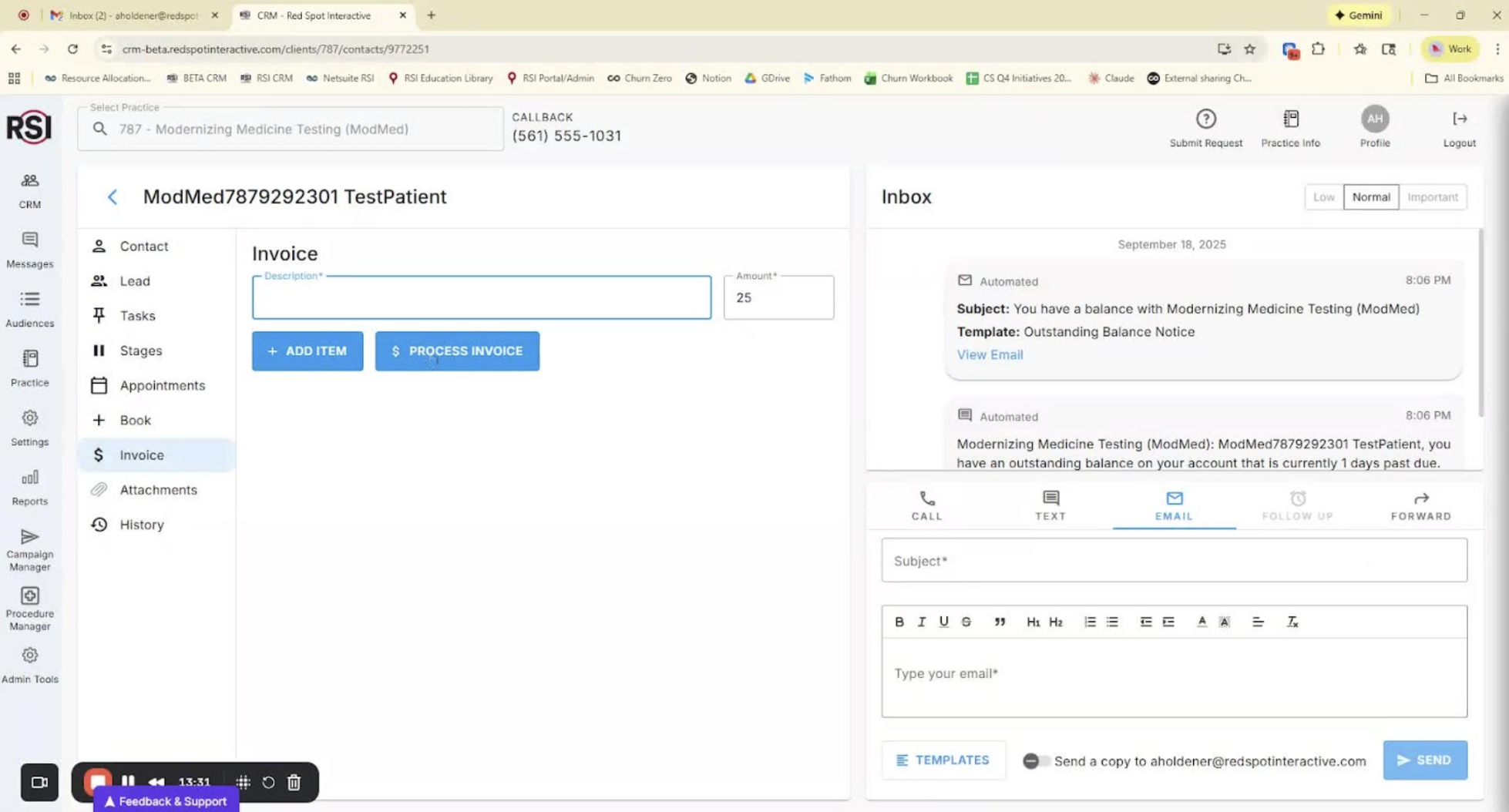 - Use filters for Contact, Lead, Appointment, and Bill.